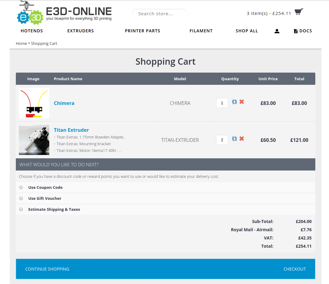 Ohne mich jetzt über die Teile genauer zu informieren habe ich bei E3D mal einen Warenkorb angelegt, um eine ungefähre Größenordnung zu haben.